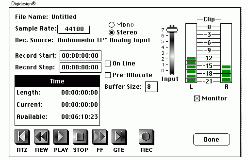 44.1 kHz sample rate) requires about 10.1 megabytes of storage. Some software